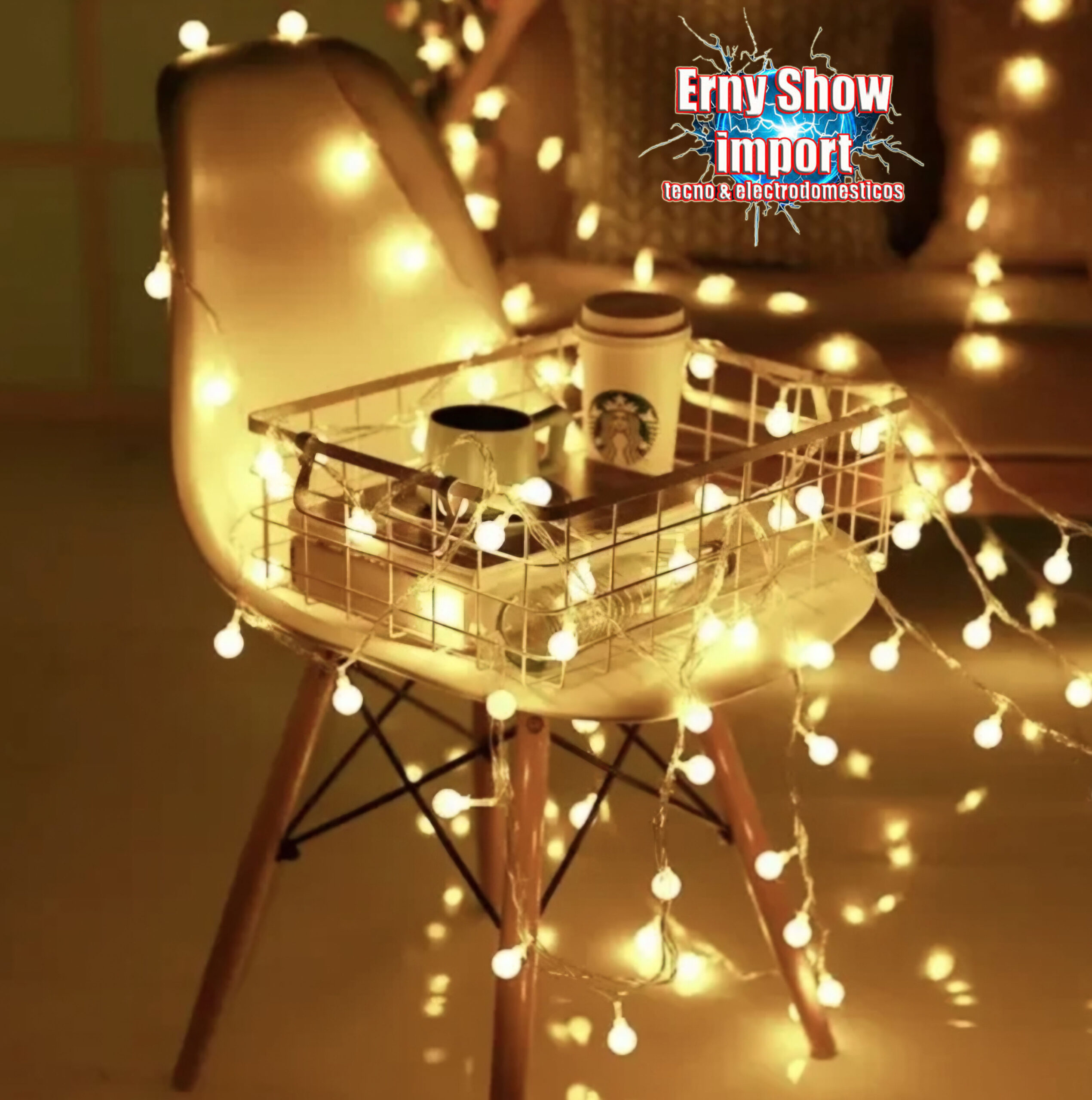 GUIRNALDA 28 BOLITAS LED BLANCO CALIDO 5 METROS 220V – LAS LUCES LED TIENEN PROTECCION IP65 LO QUE LAS HAE ADECUADAS PARA USO TANTO EN INTERIORES COMO EXTERIORES, SU INSTALACION NO REQUIERE HERRAMIENTAS ADICIONALES, TRANSFORMAN CUALQUIER AMBIENTE MONOTONO A UNO DIVERTIDO Y ACOGEDOR Y ROMANTICO, EMITEN BRILLO HERMOSO PARA REAR UNA VISTA NOCTURA IMPRESIONANTE (SE SUGIERE COLOCAR LA CAJA DE CONTROL EN LUGAR RESTUARDADO SI SE UTILIZAN AL AIRE LIBRE Y EN CONDICIONES DE HUMEDAD)