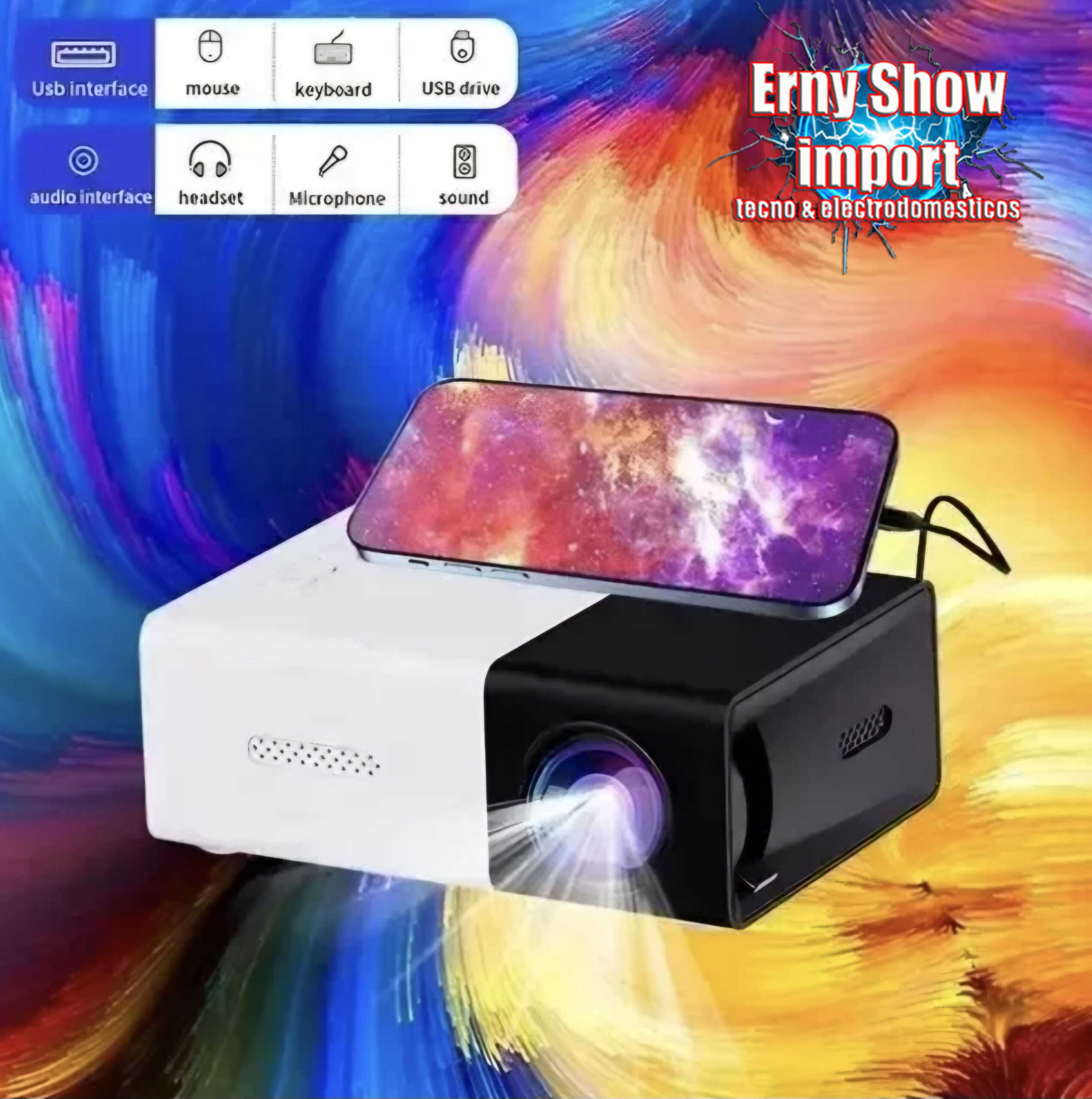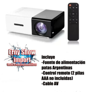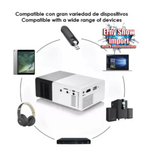 MINI PROYECTOR LED DE ALTA RESOLUCION YG300 – HD HDMI – IMAGEN PROYECTADA EN PULGADAS 24″ A 60″ – RESOLUCION 320 X 240 PIXELES – SOPORTA VIDEOS FULL HD (1920 X 1080 – VIDA UTIL: 30.000hs – ENTRADAS HDMI, AV, AUX (PARA AUDIO Y VIDEO), USB, MICRO ISB, MICRO SD – PARLANTE INCORPORADO