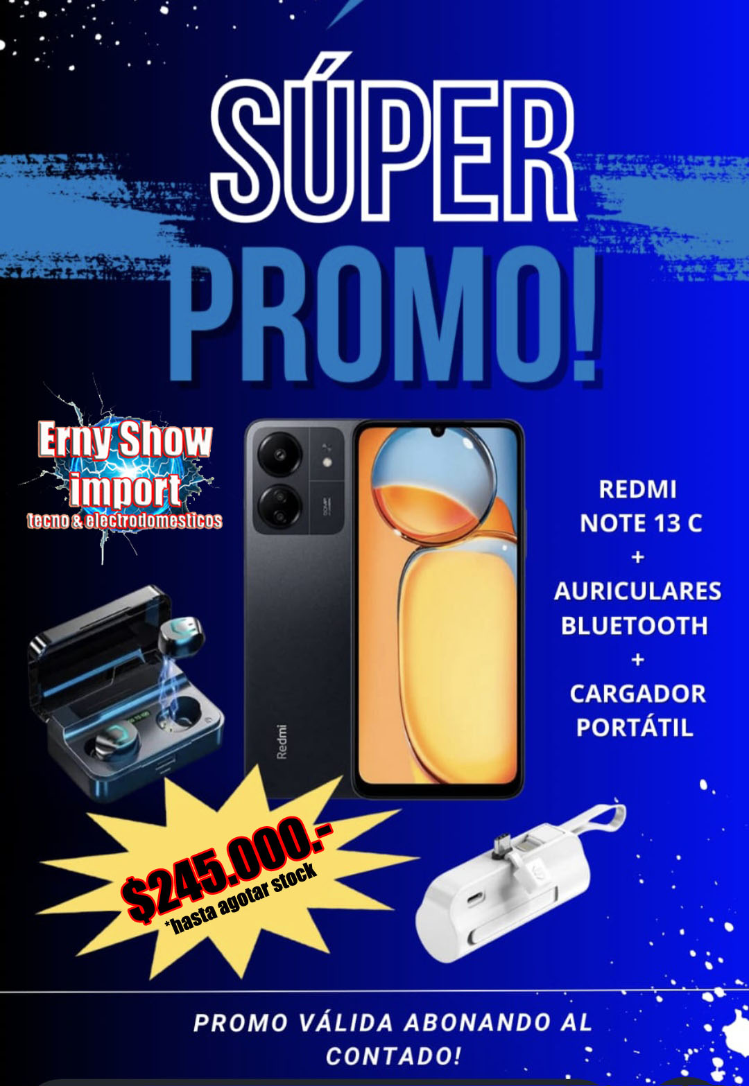 SUPER PROMO COMBO IMPERDIBLE – REDMI NOTE 13 C + AURICULARES BLUETOOT + CARGADOR PORTATIL (CARGADOR DISPONIBLE EN BLANCO O ROSA)